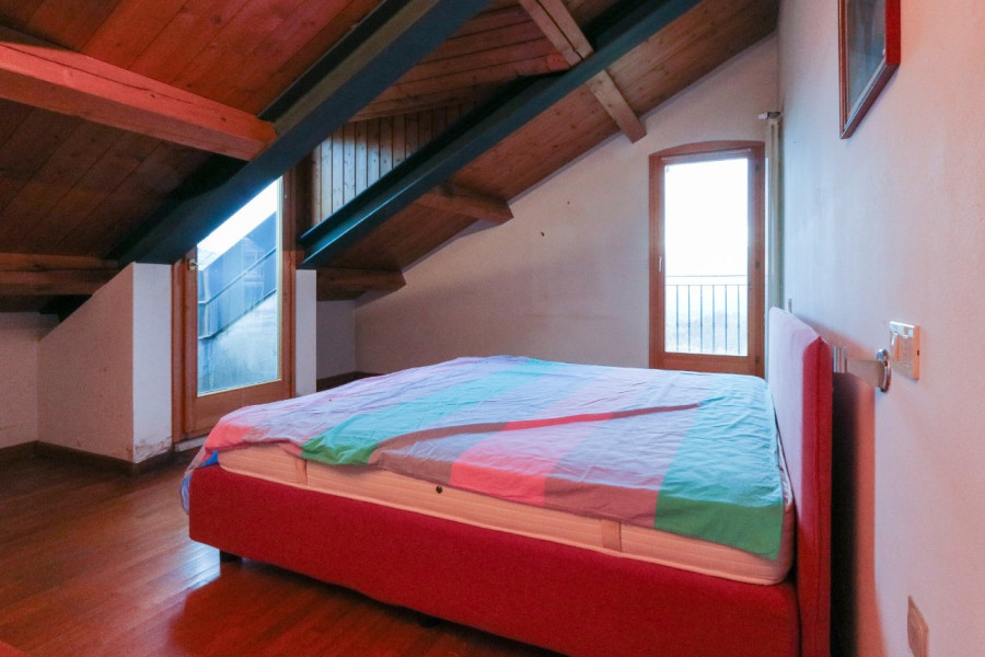 Al primo piano, mansardato, si sviluppa la zona notte con tre stanze e un bagno, in un ambiente caldo e accogliente.