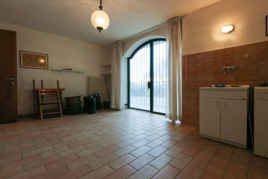 Il piano seminterrato offre ulteriori spazi funzionali: un bagno, una stanza pluriuso, una grande lavanderia/stireria e il garage.