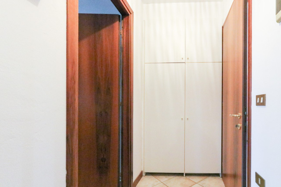 L’ingresso si apre sulla zona giorno composta da soggiorno e cucina separata, entrambi con accesso al terrazzo, perfetto per godersi un po’ di spazio all’aperto. La zona notte comprende una camera matrimoniale con terrazzo, oltre a uno studio finestrato che può essere utilizzato anche come cabina armadio. Completa l’appartamento un bagno ben organizzato.