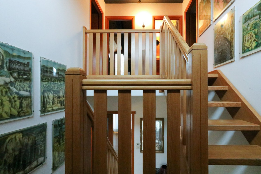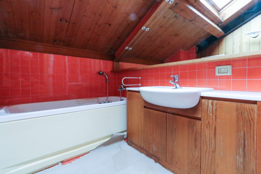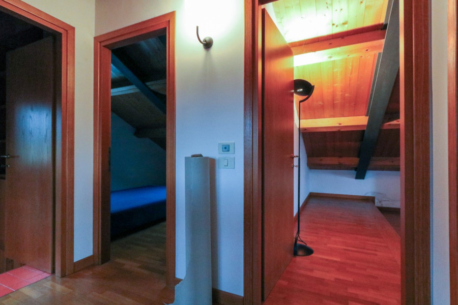 Al primo piano, mansardato, si sviluppa la zona notte con tre stanze e un bagno, in un ambiente caldo e accogliente.