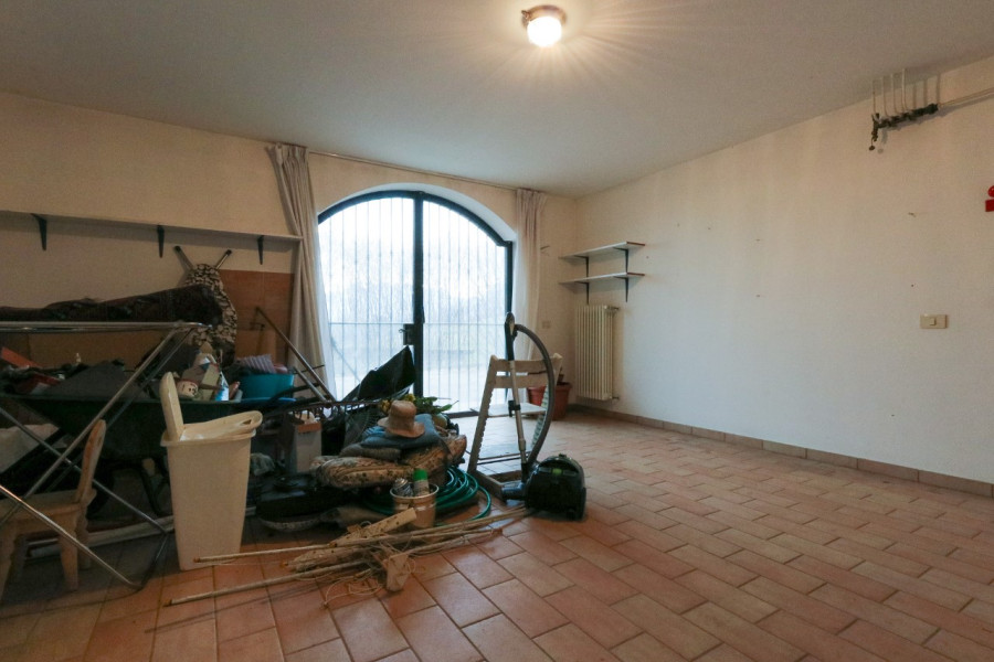 Il piano seminterrato offre ulteriori spazi funzionali: un bagno, una stanza pluriuso, una grande lavanderia/stireria e il garage.