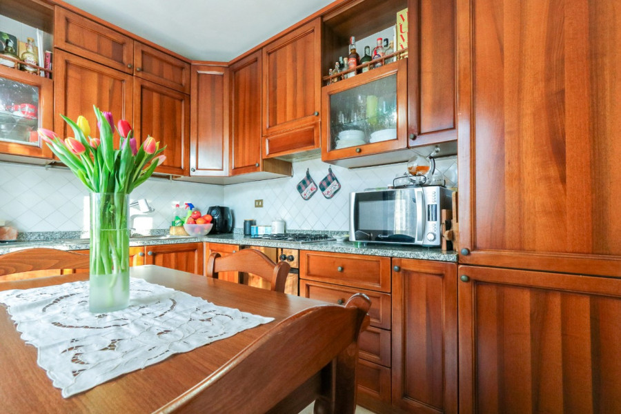 L’ingresso si apre sulla zona giorno composta da soggiorno e cucina separata, entrambi con accesso al terrazzo, perfetto per godersi un po’ di spazio all’aperto. La zona notte comprende una camera matrimoniale con terrazzo, oltre a uno studio finestrato che può essere utilizzato anche come cabina armadio. Completa l’appartamento un bagno ben organizzato.